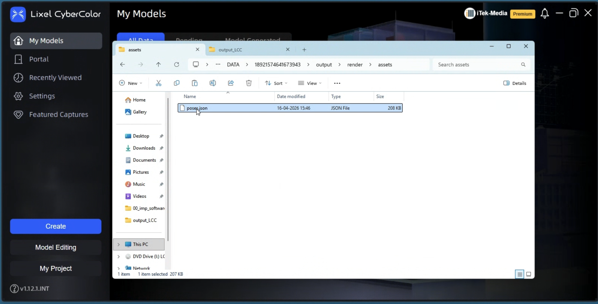 1. Open **Lixel CyberColor** and click **Create** to start a new model.