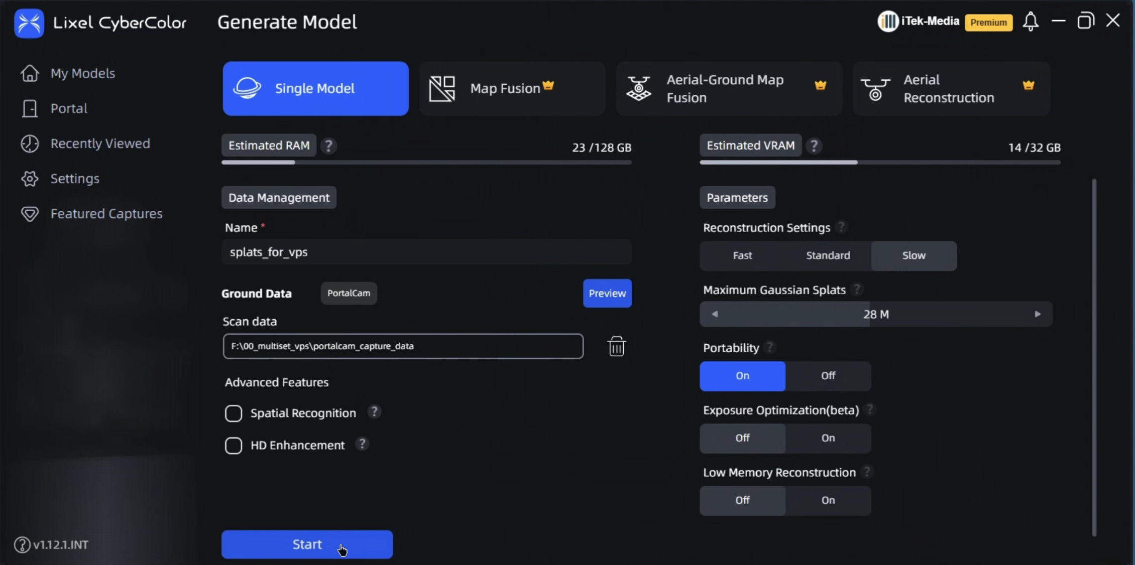 <figure><img src="https://3163433004-files.gitbook.io/~/files/v0/b/gitbook-x-prod.appspot.com/o/spaces%2FokTDI7QVY04Zvb1pQ8Ry%2Fuploads%2Fgit-blob-c424a7fc8c5e512532708364b6ddd75b405fd8e3%2Fxgrids-gs-generate-model.png?alt=media" alt=""><figcaption><p>Lixel CyberColor — Generate Model with Portability On and Slow reconstruction.</p></figcaption></figure>
